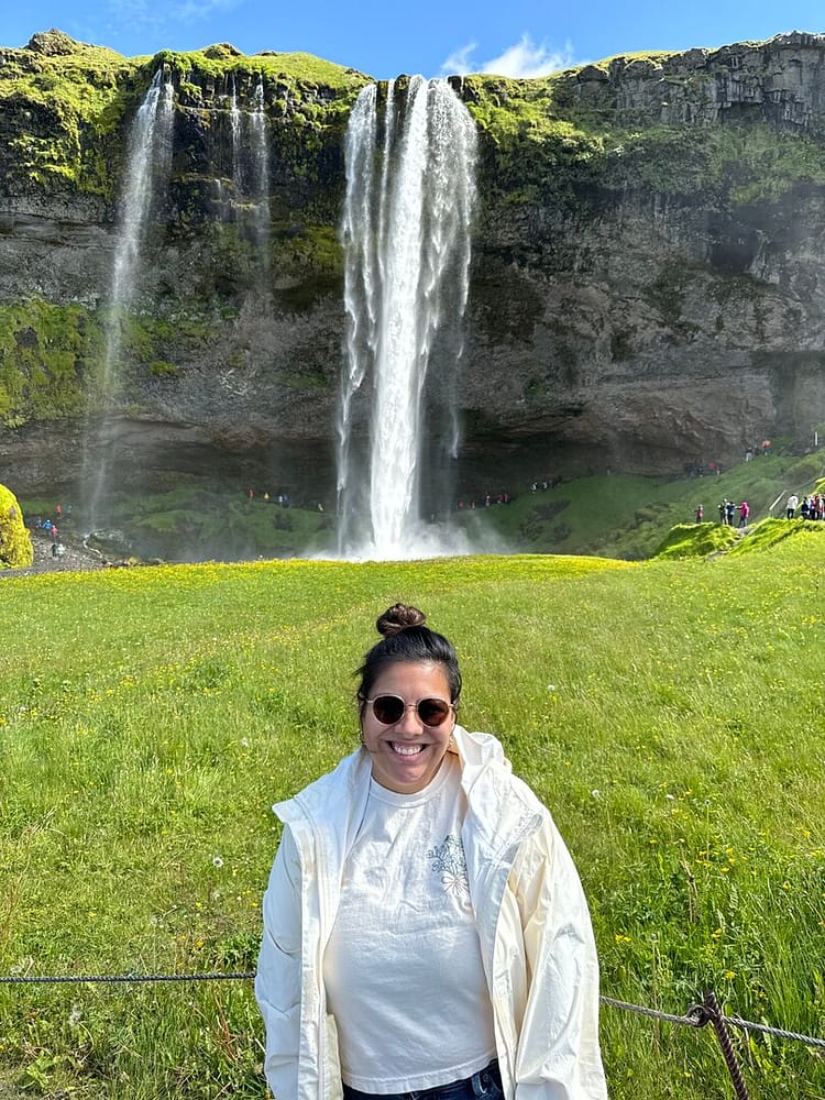 Day two was packed with driving and incredible sights. We started with a road lined with waterfalls, stopping at Gluggafoss, Hvolsvöllur, and Merkja before reaching Eyjafjallajökull volcano. From there, we drove through fields of purple lupines toward Seljalandsfoss, which was stunning. The gift shop there had great food, drinks, and clean bathrooms—a solid 10/10 road trip stop!