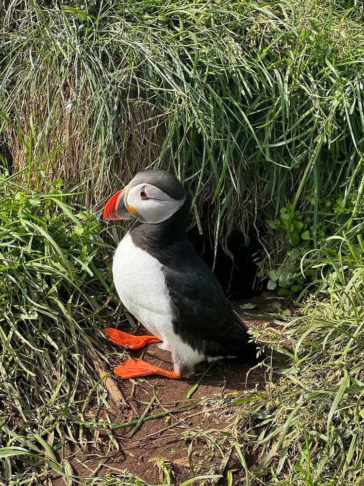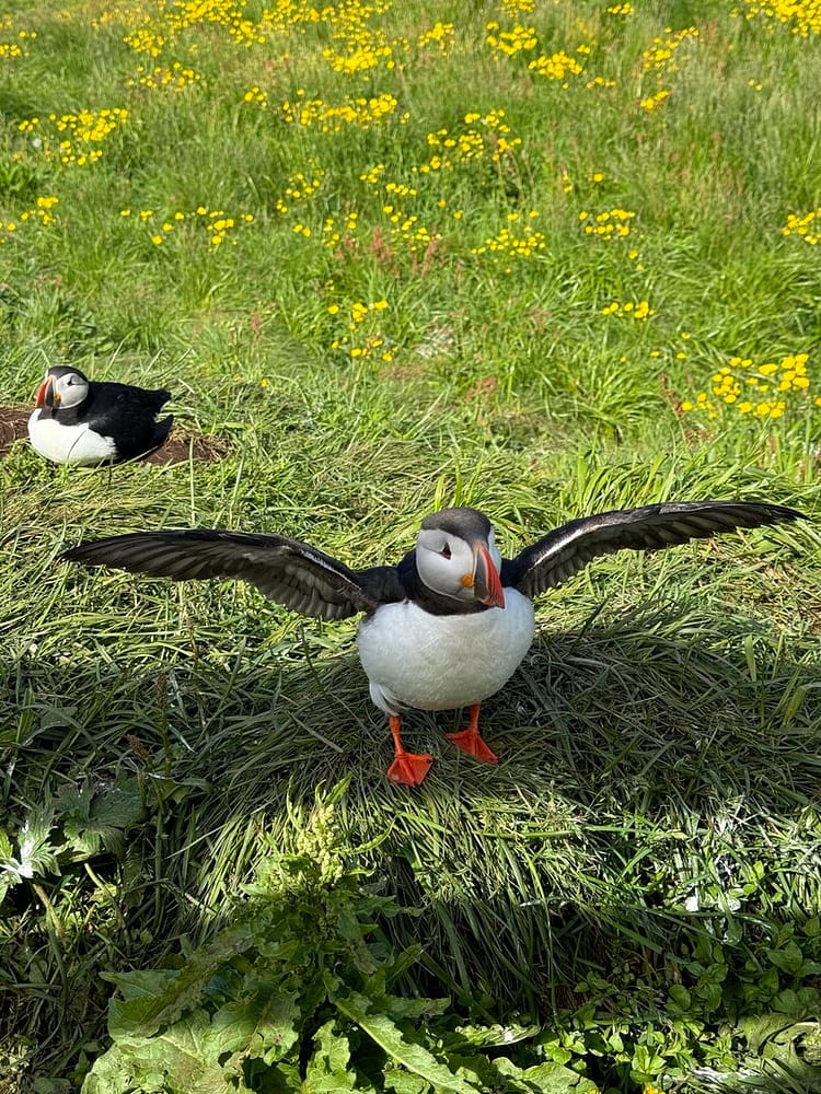 The morning of July 8th, we drove 1.5 hours from Seyðisfjörður to Borgarfjörður, known for offering the closest encounters with puffins in Iceland. The reviews did not disappoint. A small parking lot led to a short staircase climbing a rocky hill, where thousands of puffins nested. With no barriers, we could stand just feet away, watching them waddle, nest, and dive. It seemed like stepping into a nature documentary. Only about a dozen people were there, making the experience even more intimate. The viewing area also had bathrooms and nearby restaurants—perfect for road trippers. After soaking in this incredible wildlife moment, we continued along the Ring Road toward Skútustaðahreppur to explore its geothermal wonders.