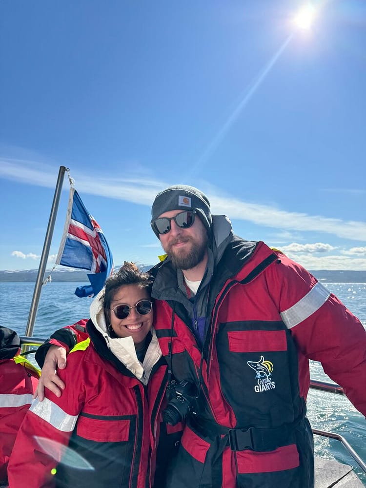 We spent the next couple nights in Akureyri. After grabbing Icelandic hot dogs (a must-try), we recharged one afternoon at the Mývatn Nature Baths—a smaller, less touristy version of the Blue Lagoon, complete with geothermal saunas. On July 9th, we left Akureyri and made our way to Húsavík, Iceland’s whale-watching capital. Nearing the end of our Ring Road adventure, we booked a tour with Gentle Giants, keeping expectations low, since whale sightings are never guaranteed. But luck was on our side—we spotted dolphins and several humpback whales, a breathtaking experience in the crisp northern air. After days of driving and sightseeing, we took the afternoon to recharge.