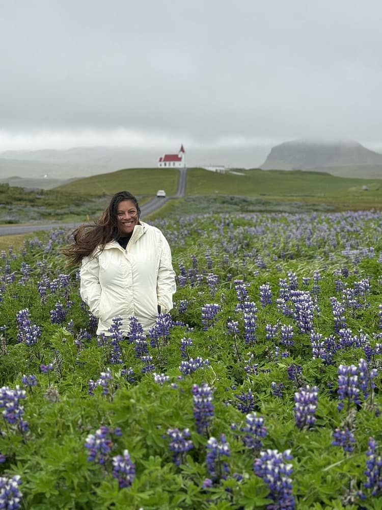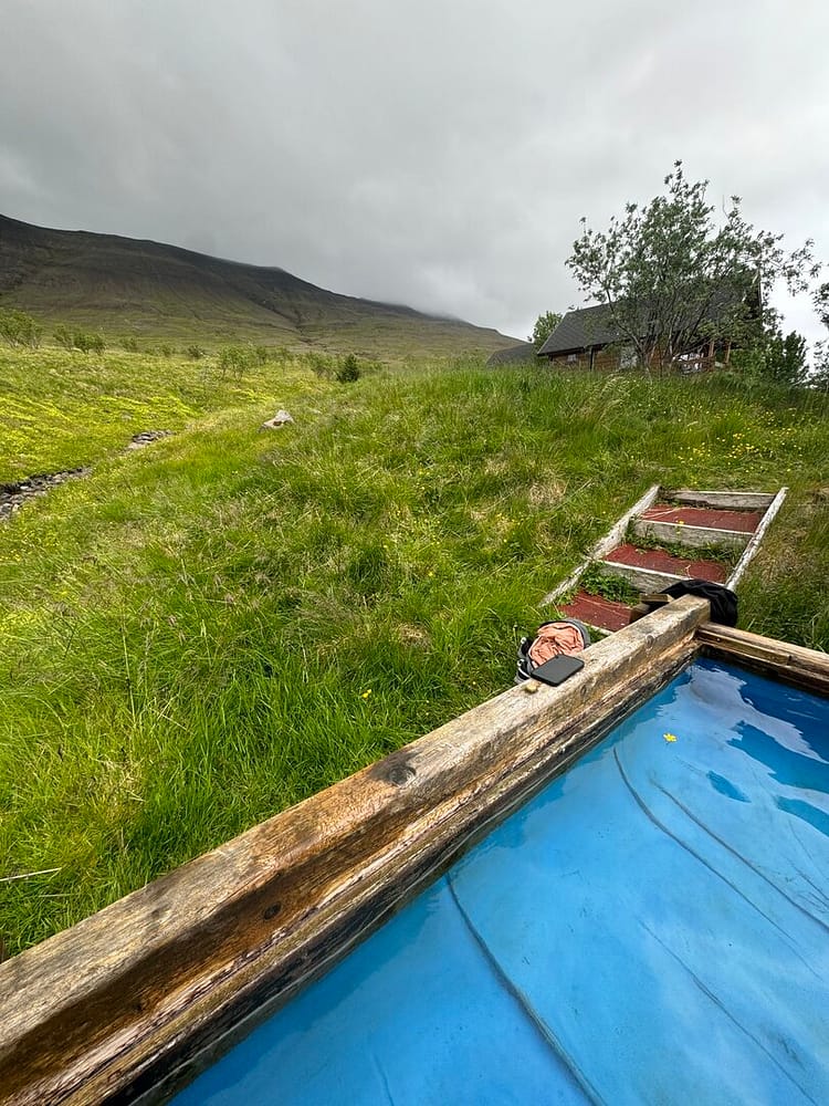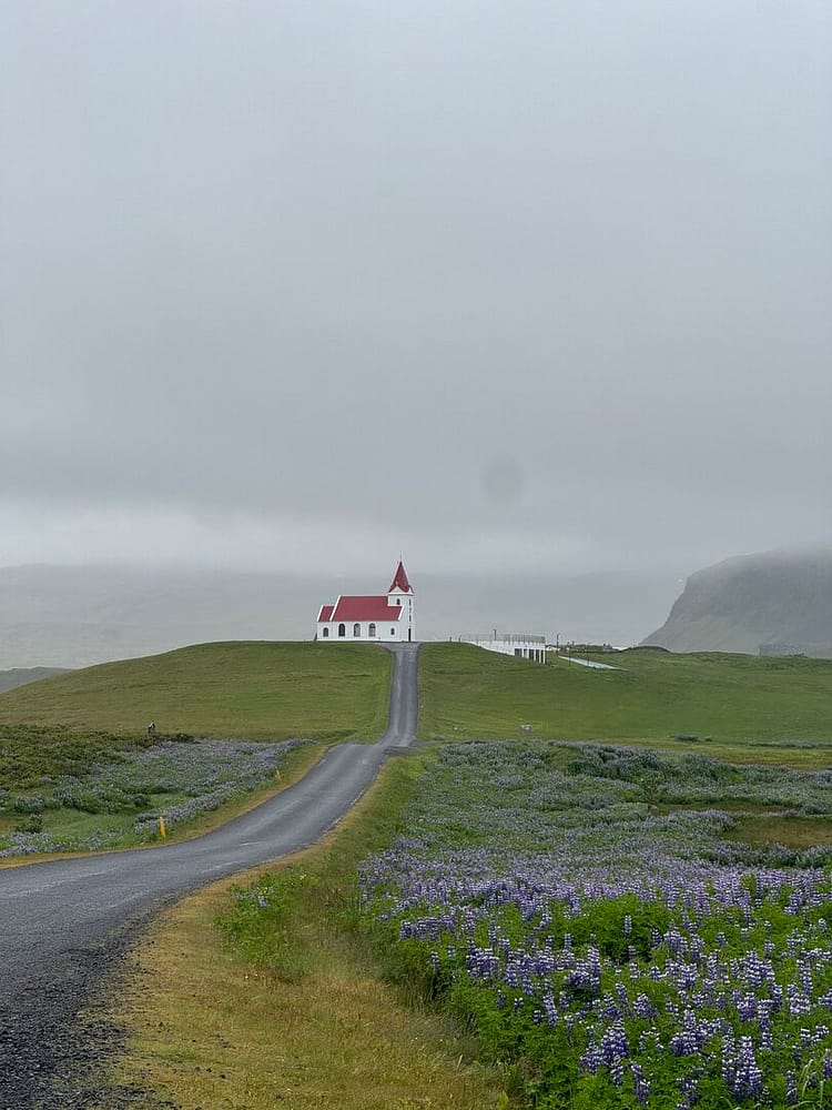For our last day, we drove west in search of Ingjaldshólskirkja church, a dreamy red-roofed church surrounded by endless fields of purple lupines. Rain poured as we took in the incredible view, but it was still worth it. That night, we stayed in a remote log cabin in Búðardalur with a geothermal hot tub, soaking under the midnight sun with no humans for miles. Absolute perfection.