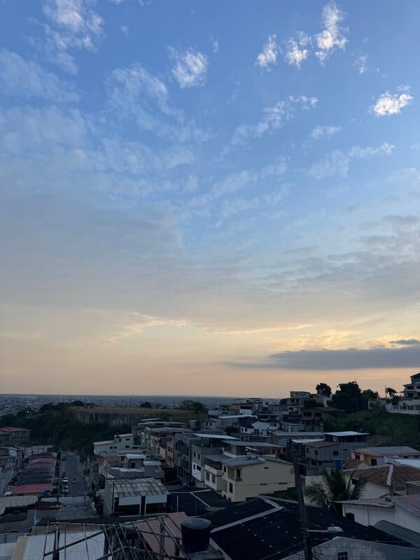 We flew from Cusco to Guayaquil and landed around 6 p.m. Since flights to the Galápagos only leave a couple of times a day, we knew we’d need to spend one night on the coast. We booked an Airbnb in Guayaquil that had a rooftop pool and an indoor hot tub—literally the perfect setup for unwinding after a long travel day. We only had a few hours there, but it was a nice little transition before heading to San Cristóbal. We grabbed some street food, and I had the best empanadas ever—flaky, crispy, and filled with the most flavorful beef. A perfect last meal on the mainland!