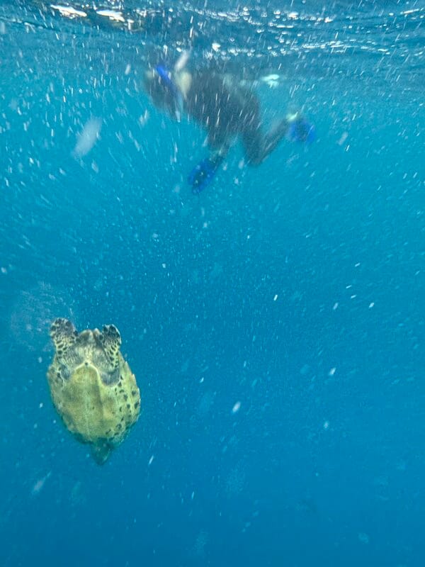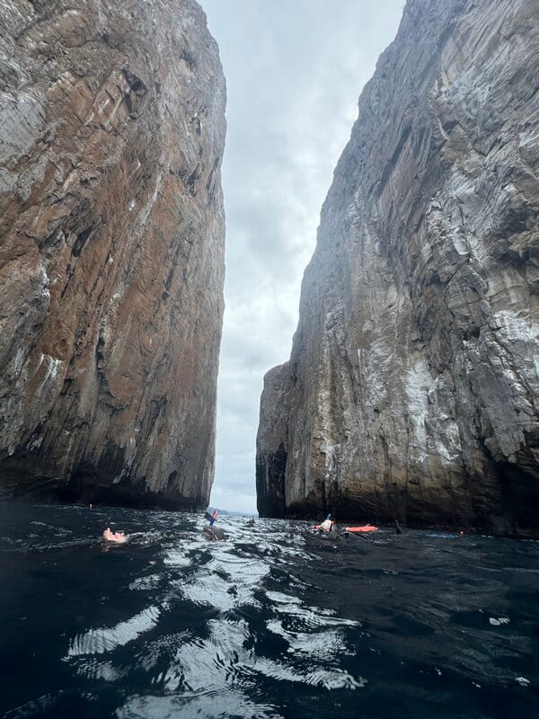 First stop: snorkeling at Kicker Rock. This was intense but absolutely worth it. We swam with turtles (cue my screaming), a stingray, a hammerhead shark (!!), and some very playful sea lions. The water was crystal clear, and I could see the sheer size of the sharks—both terrifying and mesmerizing at the same time. Next, we stopped at Cerro Brujo and Bahía Sardina for another round of snorkeling, this time in waters teeming with coral and the most vibrant fish I’ve ever seen. More turtles showed up, which, honestly, I was not expecting.