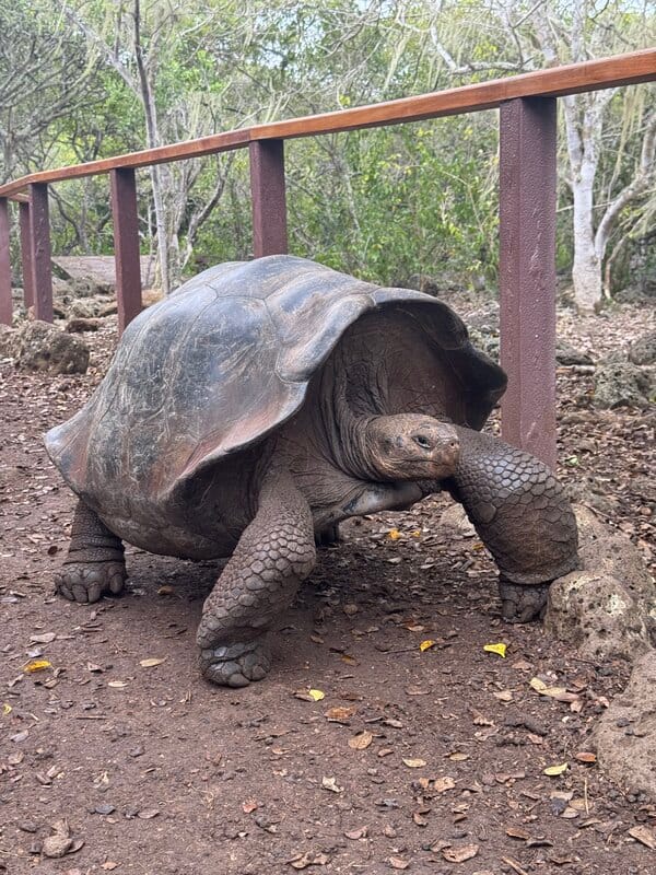 The next morning, we met up with the taxi driver from the airport for our final island tour. Our first stop was El Junco, a stunning volcanic crater. The hike was peaceful, filled with tiny birds flitting around, and when we reached the water’s edge, the frigate birds put on an incredible show, diving into the lake to bathe. It felt like nature’s private performance just for us. Then, we visited the Galápagos National Park nursery, arriving just in time for feeding of the Galapagos giant tortoises. Watching the massive tortoises lumber over for food was like stepping back in time—I swear they looked like ancient dinosaurs! To wrap up the tour, we visited Puerto Chino, yet another jaw-dropping white sand beach with that signature electric blue water.