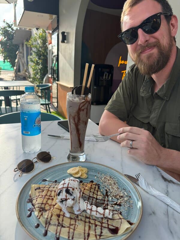 That afternoon, we treated ourselves to a seaside café, enjoying crepes and frozen coffee before indulging in the best couples’ massage we’ve ever had. If you’re ever in San Cristóbal, ask for Santi—absolute magic! We ended the night watching Costa Rica play Brazil in the Copa América at a local sports bar because, obviously, I never miss La Sele play.