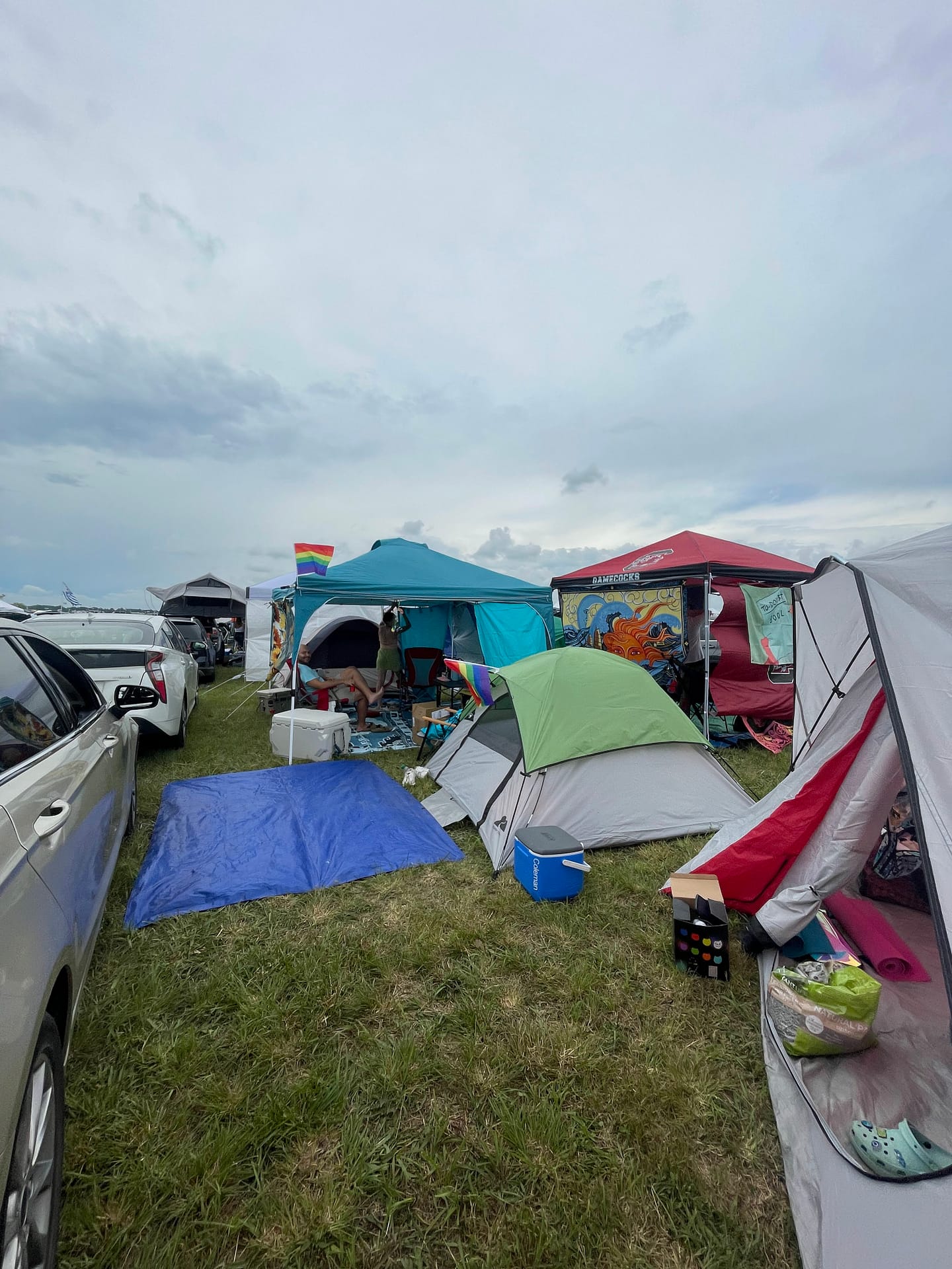 We went on a Walmart run in Manchester since it was the closest to the festival grounds, and we waited until they opened at 6:00 am. This is where we got all our food. It was close enough to the festival that everything made it perfectly, and we stocked up enough so that we didn’t have to use the grocery stores inside the grounds. We arrived at the actual festival surroundings around 9:00 am on Wednesday morning. Multiple people warned us that upon arrival, the car line was going to take hours, I don’t know if it was a good arrival time or if it was more organized this year. However, from arrival until we were in our camping spot, it only took maybe an hour. It really wasn’t bad, and we had plenty of snacks to keep us entertained.