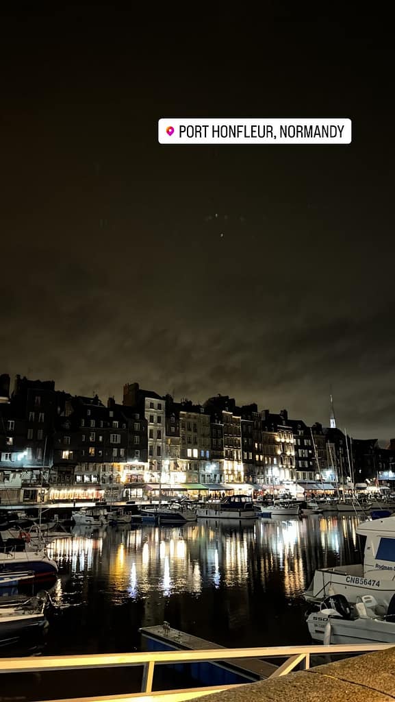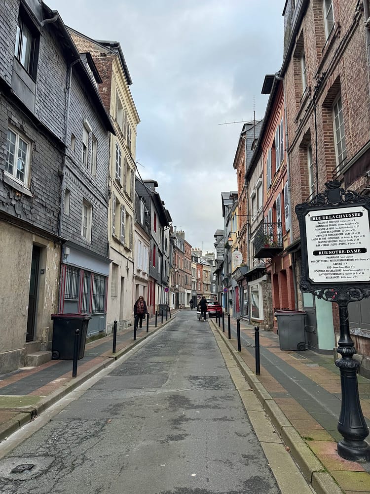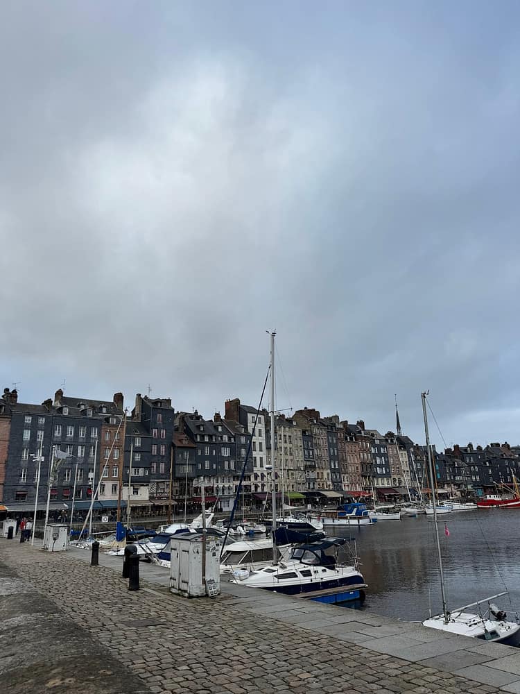 We returned with enough time to spend the afternoon in Honfleur again. We strolled around the city center, capturing images of its magnificent church. While exploring the town, we chanced upon a leatherworker in his atelier. We were captivated by his pieces. Despite the store being closed, he invited us in to show us around his shop, his products, and his processes. We both left with brand new leather belts and some fascinating stories. After shopping, we headed down to the marina, snapped some photos of the iconic row of colorful shops, and bought Nutella crepes to enjoy on our walk.