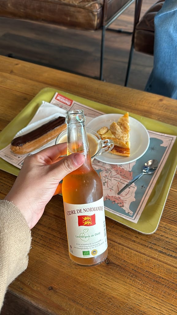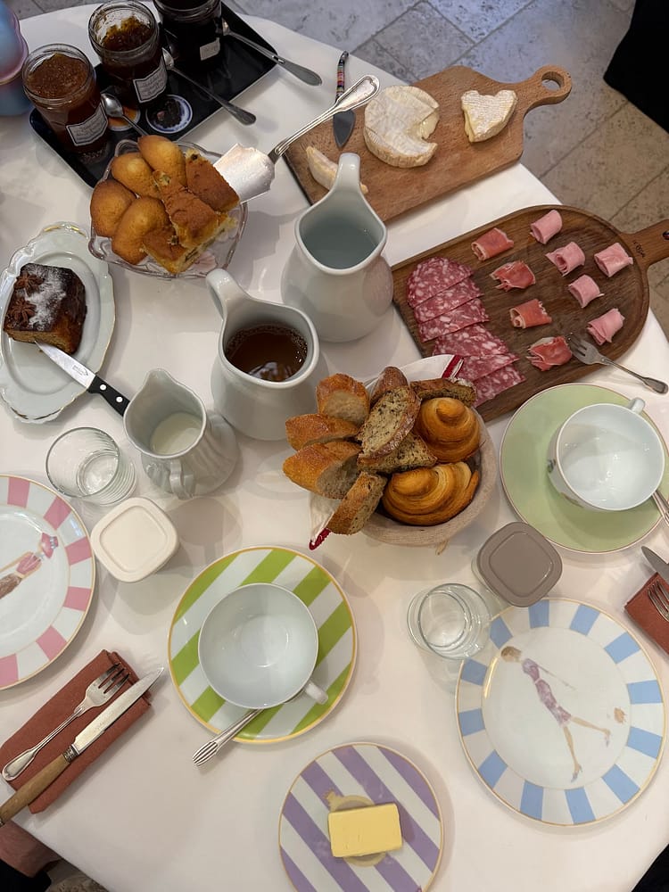 On the first night, we were the only guests in her house, and it felt like home. We went to bed right after arriving, as we were extremely tired from the day and had an early start the next morning.We had informed Aline that we could have breakfast around 8:00 am, and when we descended to the dining room area the next morning, a veritable feast awaited us. She had prepared a spread of cheeses, meats, breads, pastries, pancakes, fruit, and freshly made apple juice from their orchard. I definitely recommend opting for a B&B when visiting this part of France. You can’t beat staying in such charming places that make you feel like you’re in a movie.