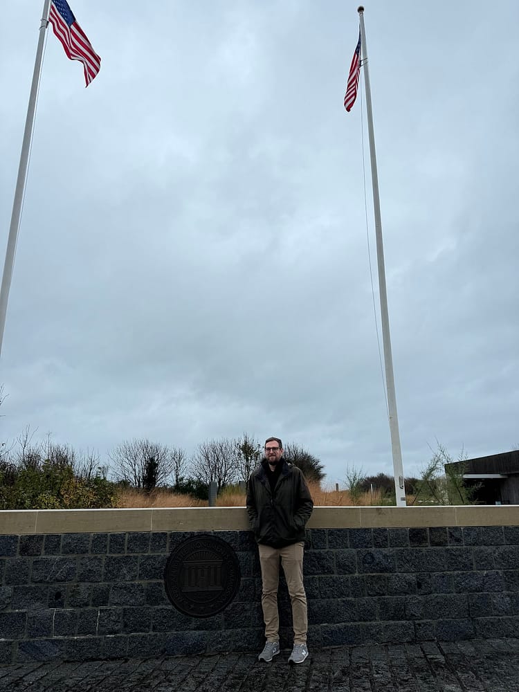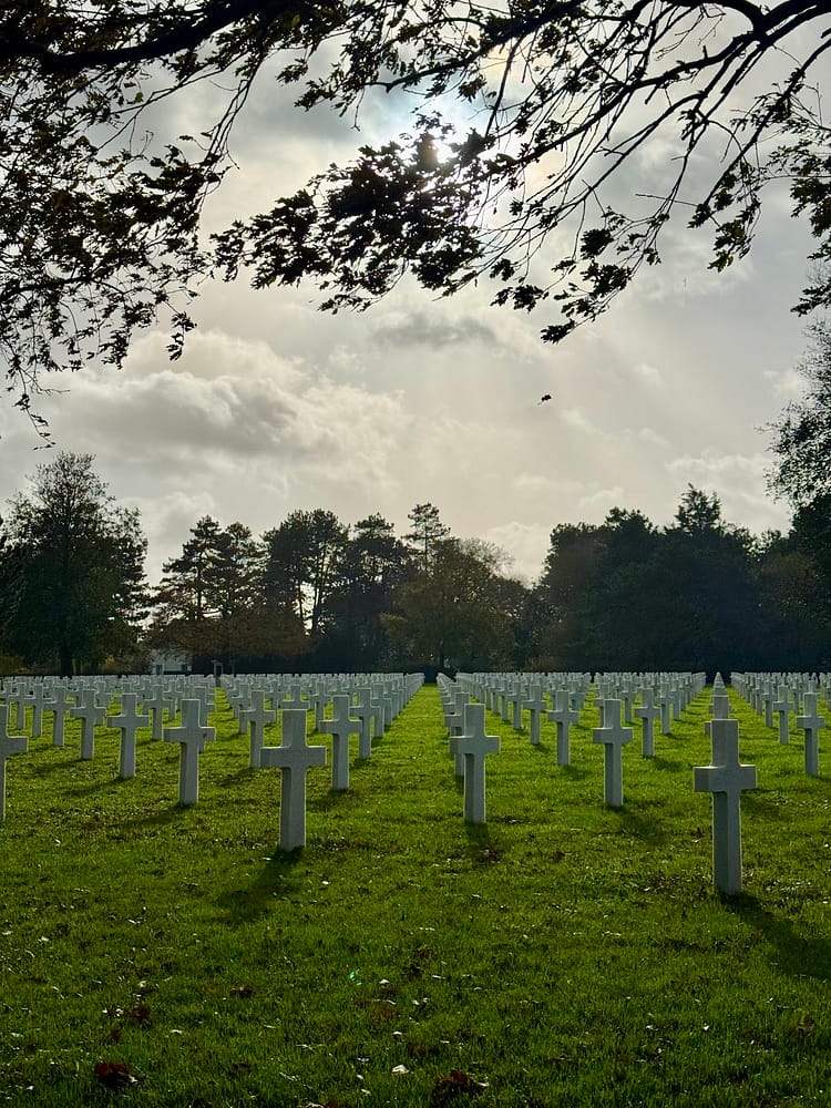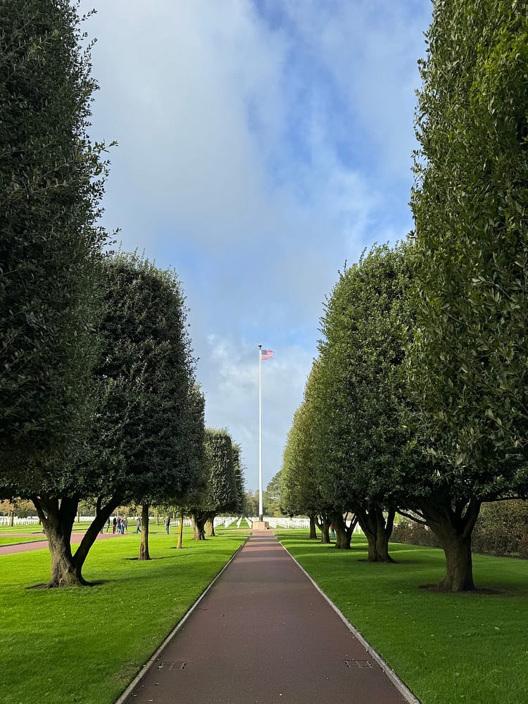 The following morning, breakfast was just as splendid as the previous day’s. With a well-fed belly and a fully charged car, we set off for the American Normandy Cemetery and Omaha Beach. Describing the emotions that accompany a visit to the American Normandy Cemetery is challenging. One experiences a profound sense of sadness, hope, and pride all at once, which follows you as you pass by each white cross. The cemetery offers serene, peaceful, and beautiful views, making it hard to reconcile the tranquility of the place with its historical significance and the events it bore witness to. Omaha Beach, just a few minutes from the cemetery, was our next stop, where we took in the various monuments.