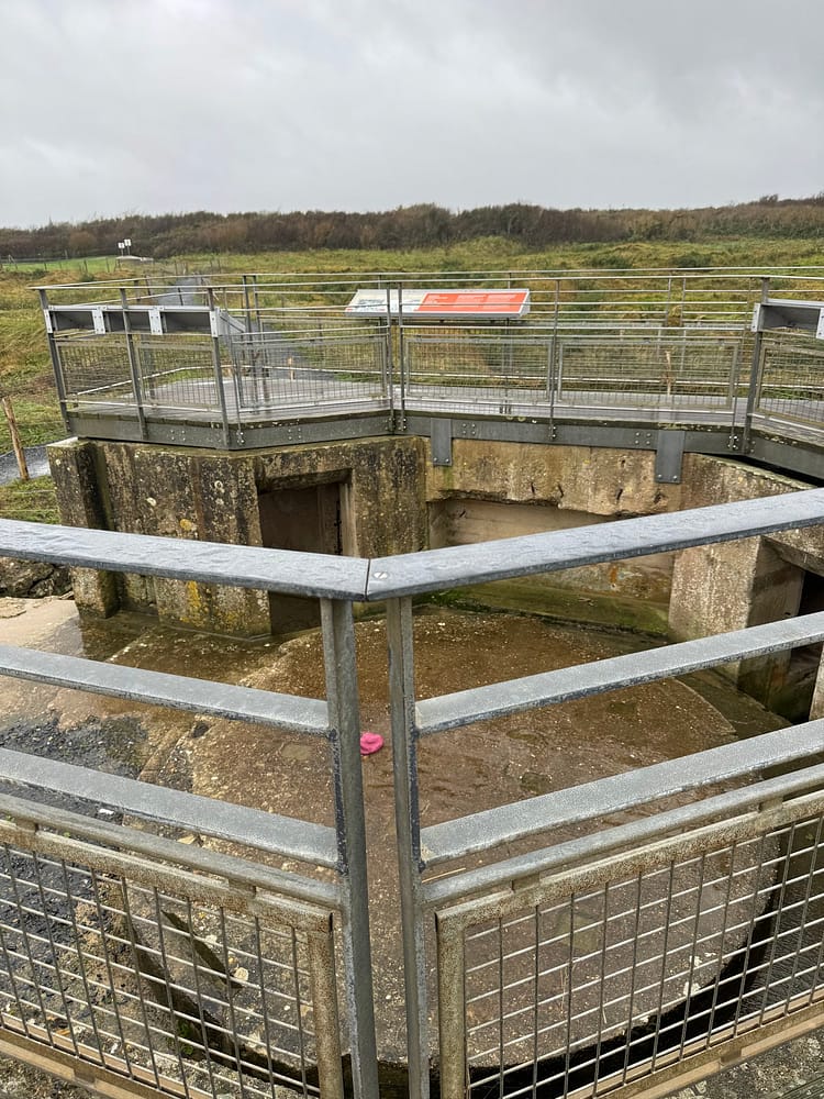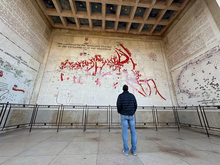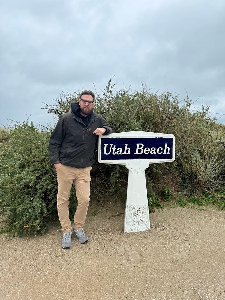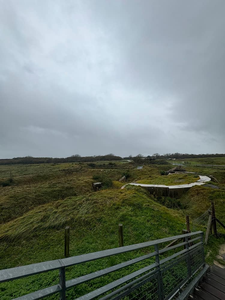 Following our visit to Pointe du Hoc, we headed to Omaha Beach, which proved to be just as sobering as the first landmark. A rain mist persisted throughout our visit, somehow fitting the somber and mournful atmosphere of the place. On our way back to find a charging port, we stopped at the Dead Man’s Corner museum. The history of this place was also surprising and often overlooked, really putting into perspective how everyone was fighting extreme battles that contributed to the success of the Allies. A unique feature of Dead Man’s Corner is its interactive attractions, like flight simulators, and an extensive collection of relics from the time.