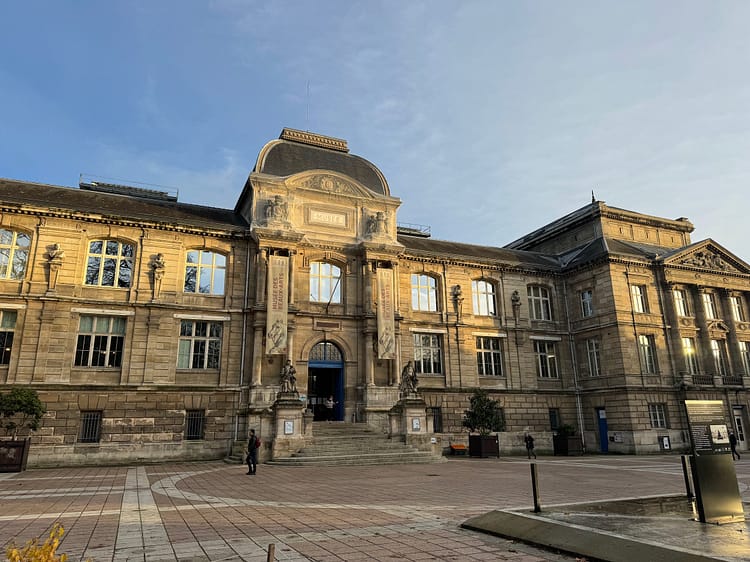 A short walk later, we reached the plaza where Joan of Arc was burned at the stake. This area has been transformed into a church in her honor. The church boasts a distinct architecture and is definitely worth the stop. Our final stop in Rouen was the Musée des Beaux-Arts, which is completely free during the off-season! Naturally, the first thing I looked for was their Impressionism wing, which was surprisingly well-stocked for a museum of its size. They housed some distinctive pieces by Claude Monet, such as Rue Saint Dennis and Rouen’s church, as well as two scenery pieces. They also had a beautiful Renoir, “Bouquet of Chrysanthemums,” and some Pissarros. We toured the entire museum in just over an hour.